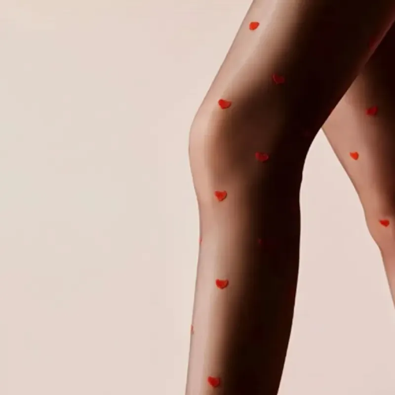 جوراب شلواری فانتزی با طرح قلبی در دو رنگ جذاب قرمز و مشکی، انتخابی خاص برای استایل‌های رمانتیک و خاص. مناسب مهمانی، استایل شبانه و روزمره.